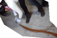 ハンマーを外します。 埃・埃・埃 ブライドルテープの交換です。