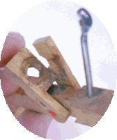 ピン板を傷つけないように角度を考えて穴あけです。 新品シルバーメッキピン。