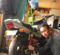 何とバイクの修理を始めました。 リヤーショックをばらして錆落し・塗装をしました。