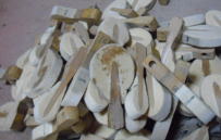 バランスピンを磨きます。魔法の薬を使って一本ずつ磨くとこのようにピッカピカ!!