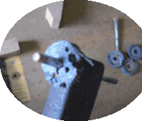 シミの付いた古いハンマーをシャンクから外しました。 これが新品の赤アンダー入りハンマー。