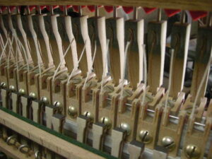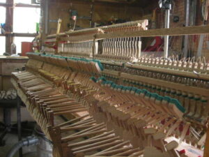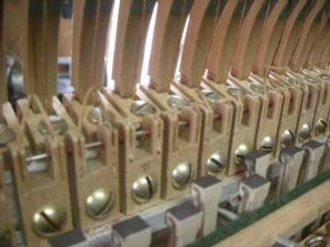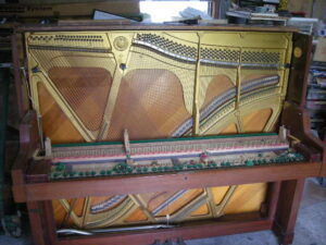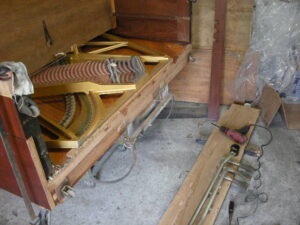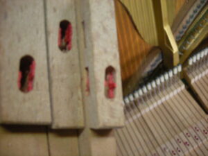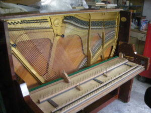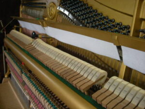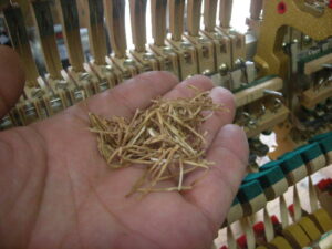 中古ピアノとして今でも高額で販売されています。残念なことにネズミが侵入し巣を作っています。また、虫食いでフェルト類がやられていますね。でもご安心ください、グローミュージックの作業で完璧に修復いたします。