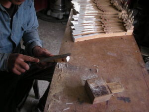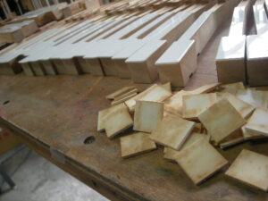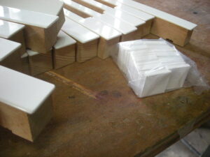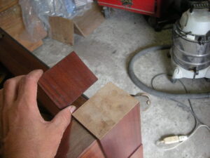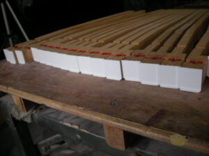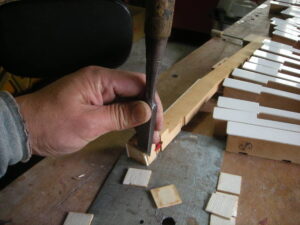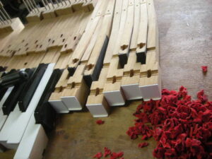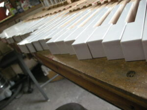 貼り付け終了後、鍵盤の寸法に小口を削ります。 新品みたいになりましたね!!