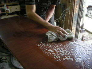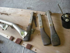 バランス部の新品クロスを専用貼り駒で圧着接着後、カットして終了です。