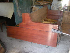 パンチングクロスの虫食い。 フロントクロスが無くなっています。 まずはピアノを倒しました。