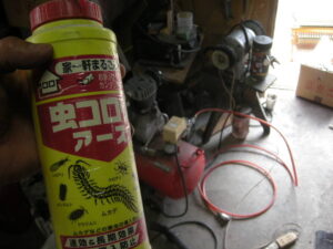 これもまたビックリでシロアリにやられています。薬剤を投入してシロアリ対策(サービス作業)