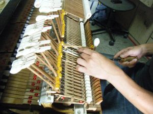 ジャック左右をサポートで調整。   鍵盤高さ調整。         それにしても暑い!!