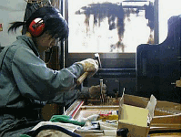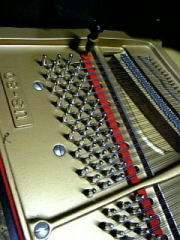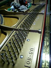 チューニングピン打ち込み。 イヤーマフがないと頭がガンガン響きます。 打ち込み完了!!
