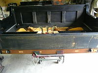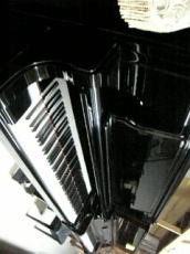 ピアノを倒して底板を外します。 ペダル部一式分解していきます。