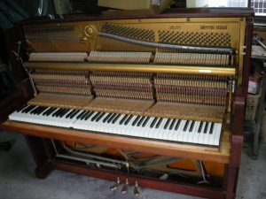 ヤマハU1E 高さ121cm 最終調律平成15年。 上前板が白っぽくなっています。