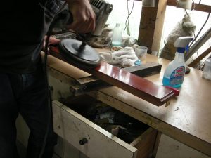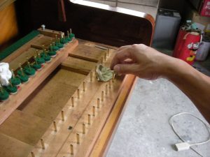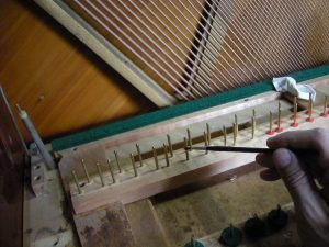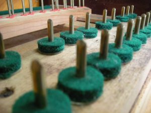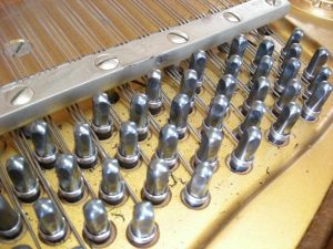 チューニングピンを専用の機械で磨きました。 新品ビスで底板取り付け。