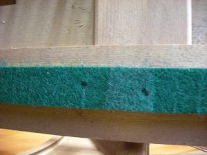 フロントピンも変色。 チューニングピン。 虫食いで穴の開いたクロス。