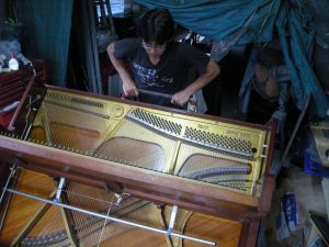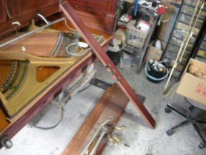 ピアノ専用馬を使いピアノを倒しました。 底板を外しました。
