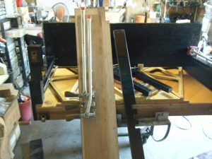 棚板が綺麗になりました。 ピアノを倒しました。 底板を外しました。