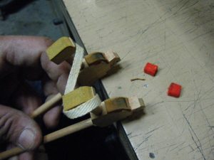 ハンマーを万力に挟みファイリング(削って整形)します。 弦溝も無くなり綺麗になりました。