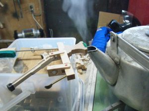 ウイッペンヒールクロスも虫食いの為ウイッペンを全部外し、湯煎に掛けクロスを剥がします。