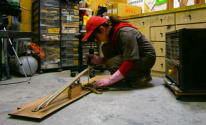 ビニールの付いた新品木口。 作業中。 綺麗になりましたね!!