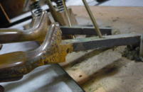 ネズミの・・・錆とシミ。 錆落しに棚板削り。 立派になりました。 バランスピンもこの通り(^^)v