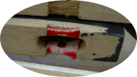 ピンブッシュを抜きます。 新品部品。 ピンブッシュ打ち込み 穴あけは角度を付けて熟練の技