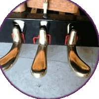 作業が半分終わりピアノが立ちました。ピン・弦が光ってますね。 ペダルも綺麗だ!!