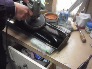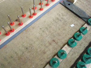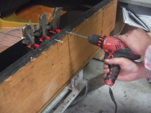 チューニングピンは専用の治具を電ドラに付け磨きます。 ピカピカです!!