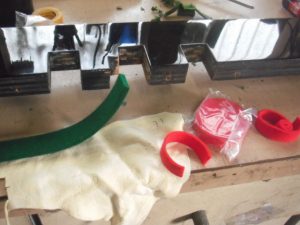 屋根とフレームの間の装飾クロスも緑から赤に交換しました。 外装はポリッシャーで磨き。