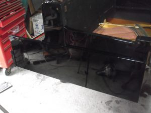 とても綺麗に光ってます。 底板取り付け後ピアノを立てました。