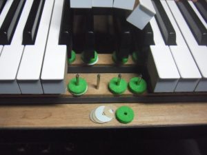 鍵盤高さ。 ペーパーパンチングと言う紙の出し入れで調整。 鍵盤深さは10mmに。