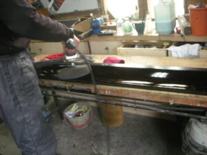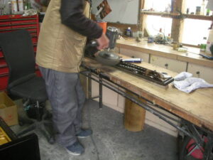 艶の無い前土台、フェルトもダメですね。まずはポリッシャーでピカピカに艶を出します。