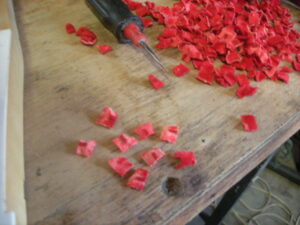 弦溝の付いたハンマーを布やすりで削って形を整えます。 綺麗になりました。
