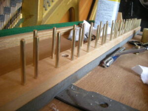 芯線の変色と錆。 チューニングピン。 専用の馬でピアノ倒し。
