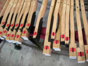 フロント・バランス・バックレール完了。 鍵盤を一本ずつ調整して本体に取付ました。