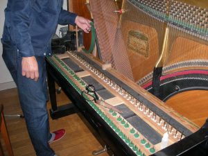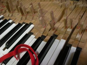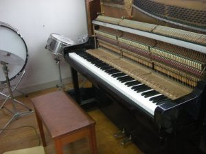 工房に持ち帰りクロス貼替を施し、学校にて鍵盤取り付け・鍵盤高さ・深さ調整します。