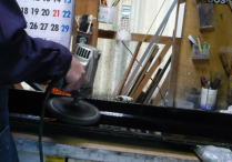 上屋根長蝶番を外します。 長いでしょ〜。 機械で磨きます。