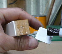 木口白鍵貼付けです。 保護用の青いビニール。 サイドをカットします。