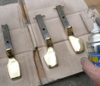 ペダルを磨きます。 ピッカピカになりましたね。 錆止めクリアー塗布で仕上げ。
