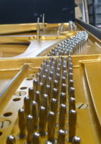 チューニングピンも抜きます。 ピン板に刺さっている見えない部分は錆が酷いですね。