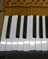 ハンマーは比較的綺麗ですね。 木口が変色していますね。 鍵盤を外しました。
