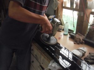 調律です。 ポリッシャーでパーツ磨き。 半分磨くと全然違いますね!!
