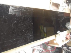 中性洗剤吹き付けカビ汚れを拭き取り、最後にコンパウンドを塗りポリッシャーで仕上げ。