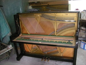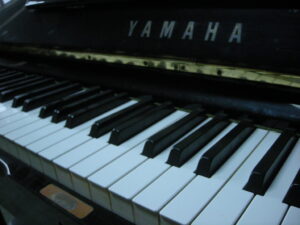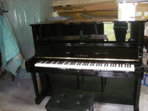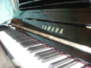 ヤマハU1M。高さ121cmの人気機種。 キープレートとロゴに変色。