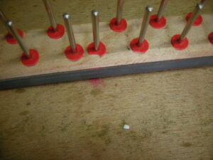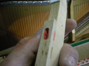 音色を決める大切なハンマー、ファイリングペーパーで削って形を整えました。