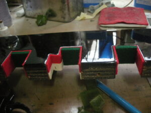緑のクロス屑が? 白鍵木口が少し変色。 鍵盤を外し箱に保管。