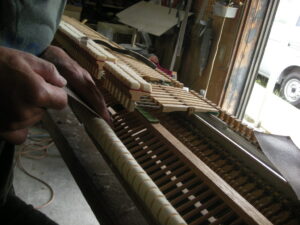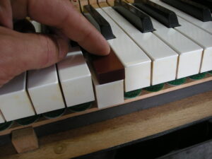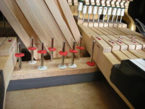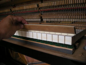 フロントピンもゴシゴシと一本ずつ磨きました。 鍵盤を取り付け終了。