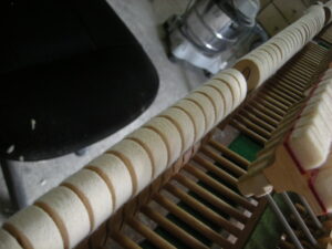 マフラーフェルトが汚いので新品フェルトに張替え。 出荷前調律です。