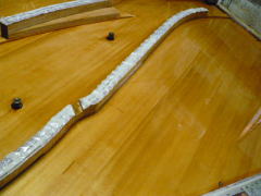 後半分・・・ガンバレ〜。 そんな訳で弦張り終了。新品は綺麗ですね。
