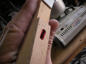 虫食われで変形したバランスパンチング。 全部交換します。 湯煎してクロスを剥がします。