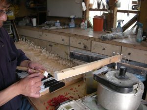 先ずはフロントに新品クロスを貼り駒で圧着接着しカットして出来上がり。