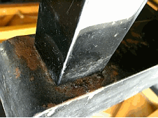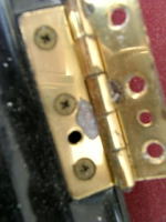 ハンマーレール磨き前・磨き後 長蝶番 譜面台蝶番
