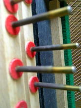 機械でチューニングピンを磨きます。 ほーらピッカピカ! 弦の錆び取り 違いが判るかな?